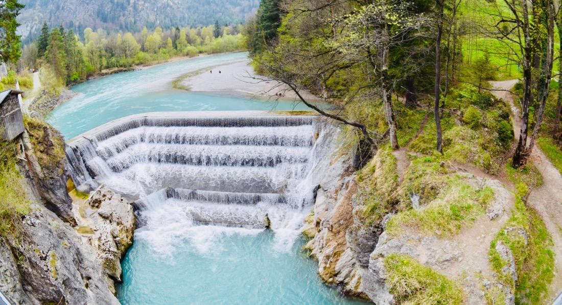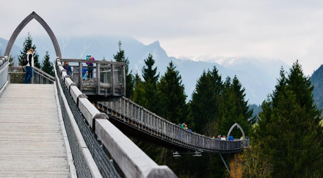 Bei Füssen, direkt hinter dem Lechfall gibt es einen Baumwipfelweg. Dieser führt über Hängebrücken auf hohen Pfählen von Deutschland nach Österreich. Wir haben diesen also erklommen. Doch schon davor gab es eine Menge zu entdecken. Ein Baumstammtelefon, einiges zum Klettern und eine lange Rutsche, die einen kleinen Berg hinunter führte. Natürlich ging es nicht nur einmal die Rutschen hinunter. Am Nachmittag schauten wir bei Flo vorbei. Das Training war toll anzusehen.
